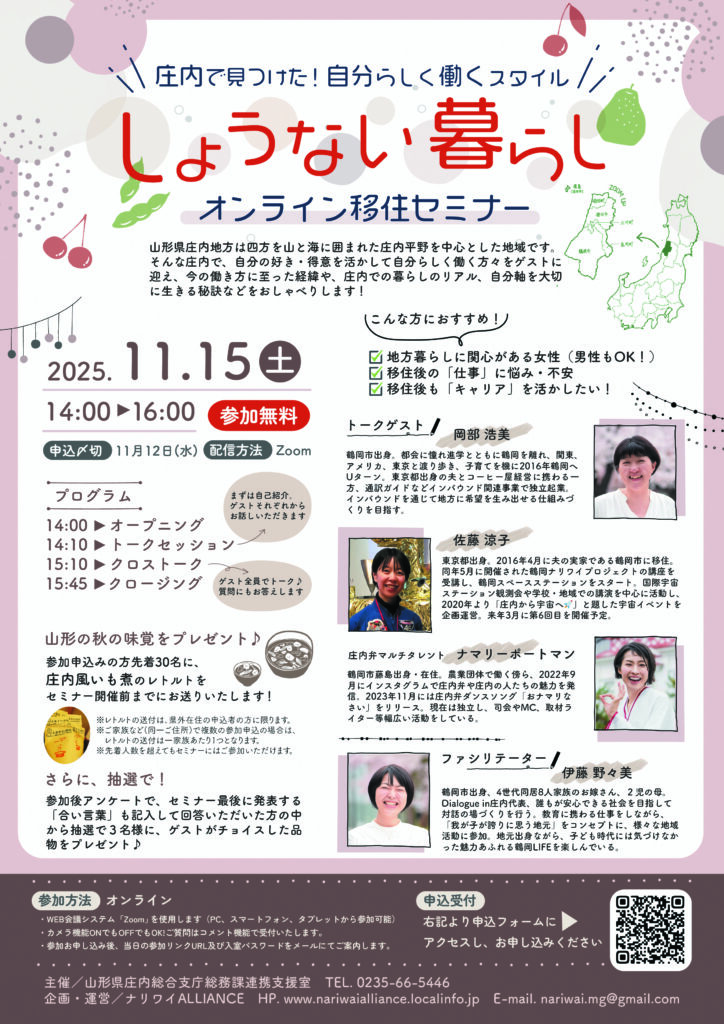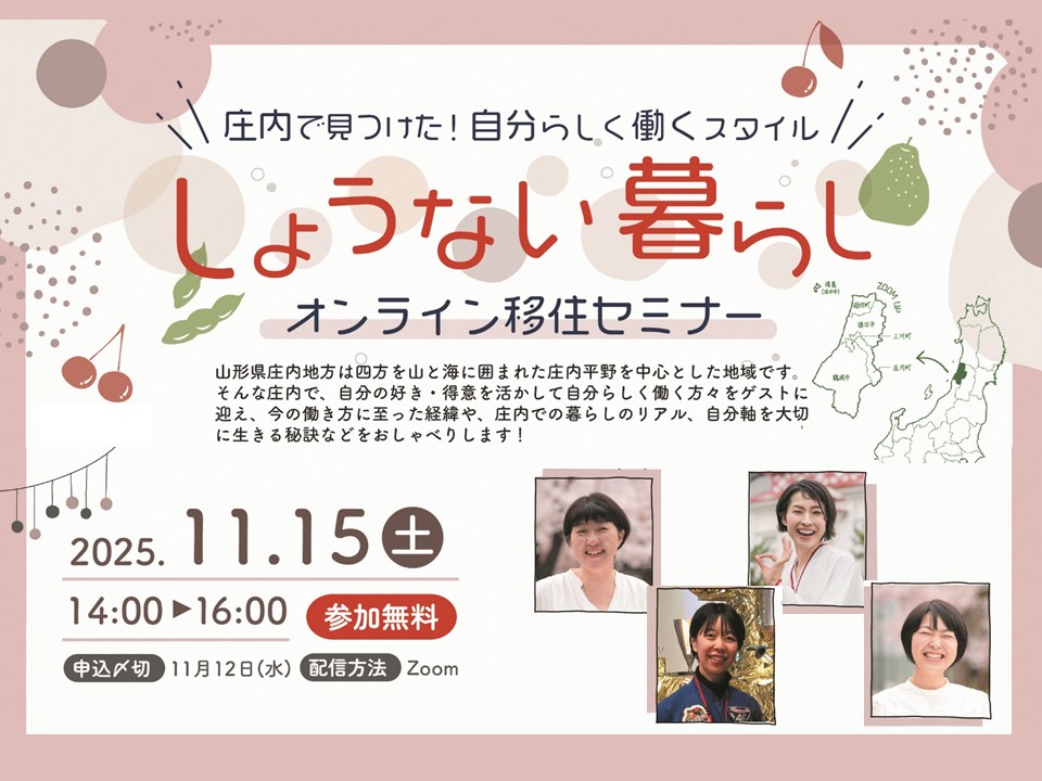 山形県庄内地方は四方を山と海に囲まれた庄内平野を中心とした地域です。そんな庄内で、自分の好き・得意を活かして自分らしく働く方々をゲストに迎え、今の働き方に至った経験や、庄内での暮らしのリアル、自分軸を大切に生きる秘訣などをおしゃべりします!