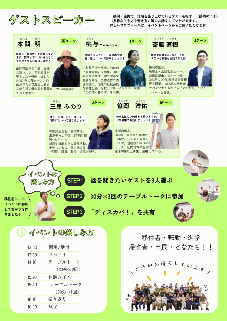 帰省者・移住者・転勤の方・学生・庄内在住の方どなたもウェルカムです!