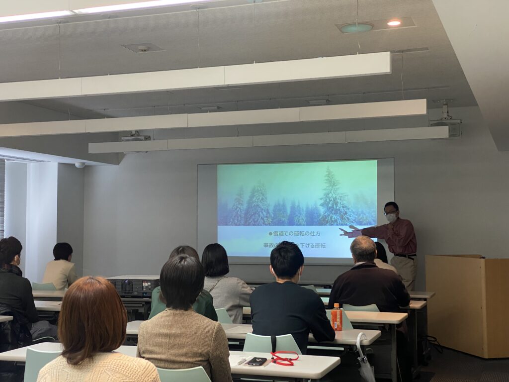 今回の指導員の方は、前職が車のディーラーともあって、最新の車の仕様や性能についても詳しく伺うことができました。参加者の方から、質問もいくつかいただけたので冬に向けて少し心づもりができたのではないでしょうか。