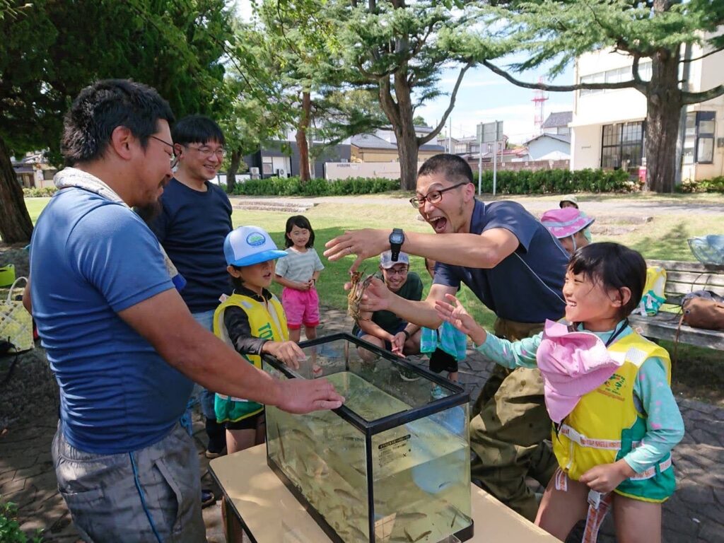 photo by Toshihisa Sugawara (右)技術士(建設部門:建設環境)として、内川での「ざっこしめ」イベントの講師も務め、専門知識を地域活動に活かしている。